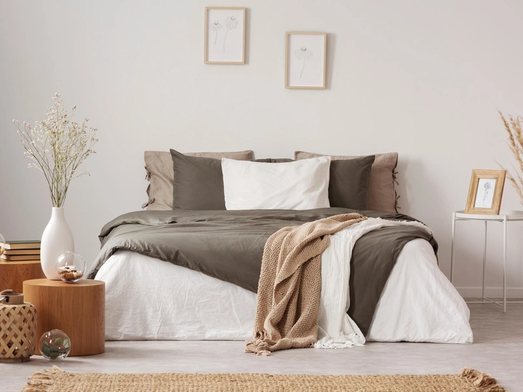 Цвет для постельного белья по фэншуй тоже важен. Для привлечения нового партнёра используйте розовые тона, для добавления «огонька» — красные. Белый цвет разбавляйте цветными акцентами: например, наволочками с принтом или ярким пледом.