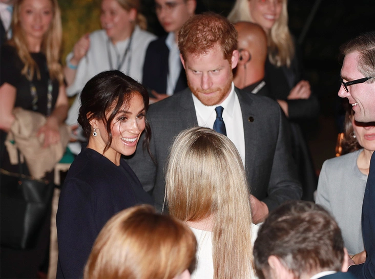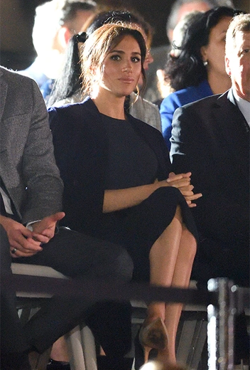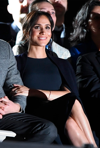 Меган осталась верна цветам этого дня: на прием и последовавшее за ним торжественное открытие Игр она прибыла в красивом в иссиня-черном пальто Gillian Anderson (линейка женской одежды, созданная знаменитой актрисой в коллаборации с брендом Winser London) и платье Stella McCartney того же оттенка. Как позже выяснилось, это первый случай, когда Меган повторно надела один из своих нарядов в статусе герцогини. Дело в том, что это же платье Ее Высочество уже надевала во время празднования дня рождения Елизаветы II в Альберт-холле.