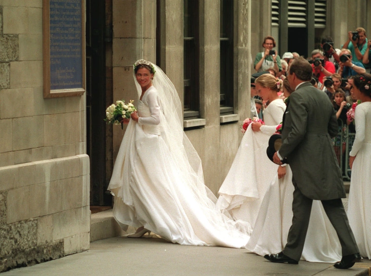 Впрочем, как только леди Сара появилась из машины, всем, о чем могли думать присутствовавшие, стало ее платье. Подвенечный наряд племянницы Королевы был одним из лучших образцов среди всех невест Виндзоров. Платье Сары было элегантным, сдержанным и лаконичным, хотя и отличалось тонкими штрихами, подчеркивавшими индивидуальность невесты. Даже по прошествии четверти века оно смотрится очень стильно и не требует каких-либо доработок.
