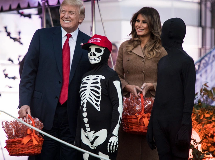 Гостей Белого дома будет развлекать музыкальный коллектив ВВС США The Strolling Strings. Стоит напомнить, что на предыдущих вечеринках в честь Хэллоуина Трампы появлялись в формальной одежде, а не в забавных костюмах.
