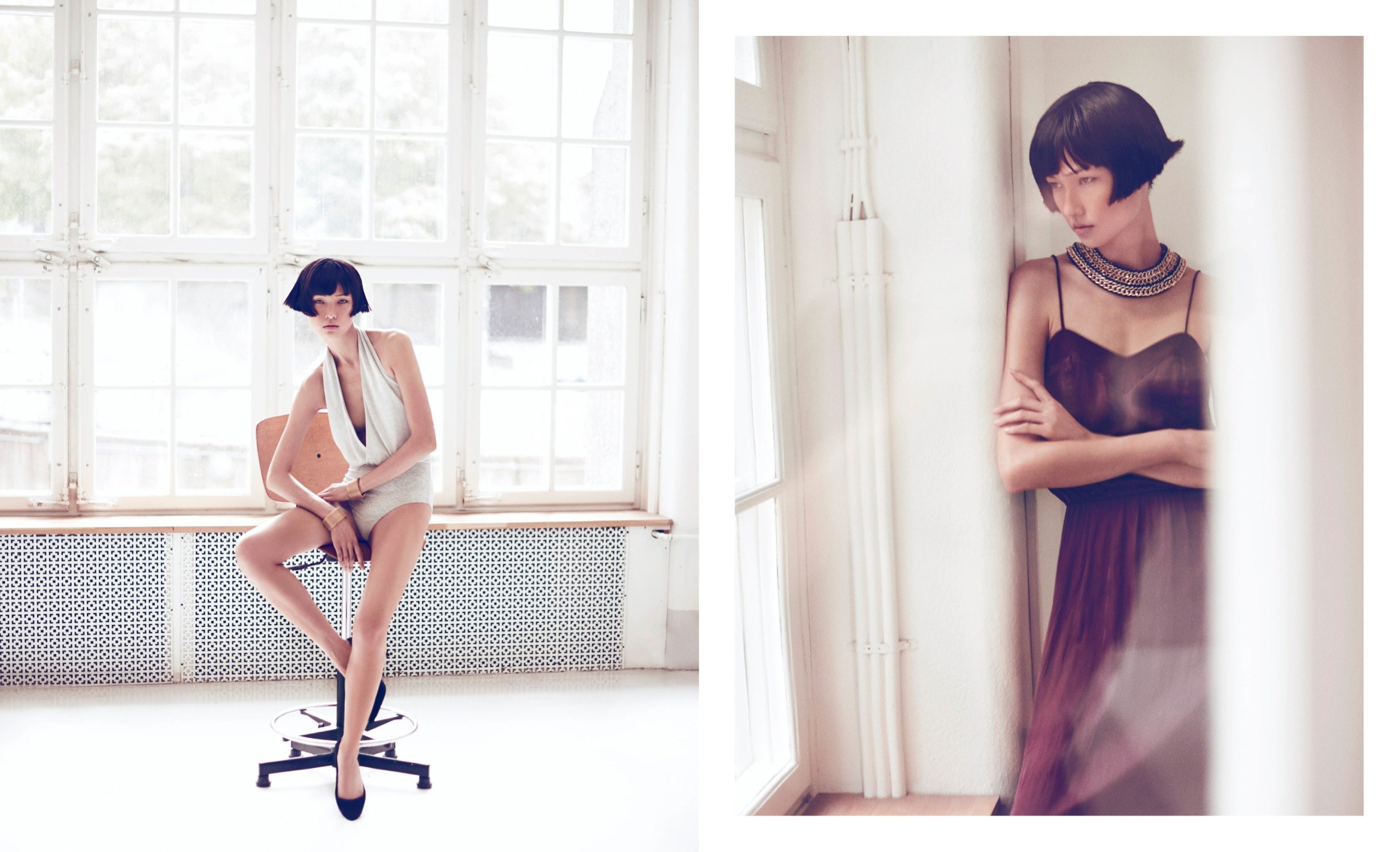 «Неотразимые» вещи из коллекции представила китайская модель Ванг Ксяо (Wang Xiao). Местом съемки стало светлое, ярко освещенное помещение: по задумке фотографа ни одна лишняя деталь на фоне не должна отвлекать внимание зрителей от модели. Хотя отвлечься от Ванг с ее фирменным геометричным бобом и загадочным выражением кошачьих глаз и так довольно трудно.