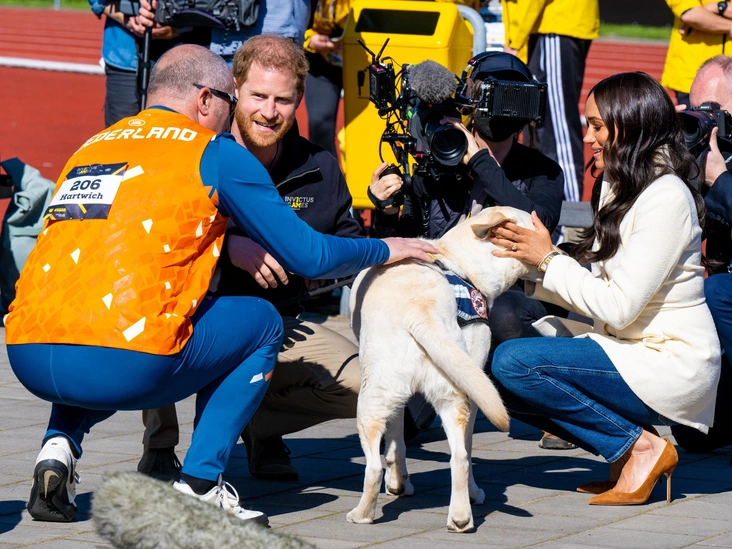 Гарри и Меган известны как большие любители собак. В Калифорнии они держат питомцев, спасенных из приюта, а в Нидерландах, похоже, почувствовали, что скучают по ним и пообщались с лабрадором-ретривером во время игр.
