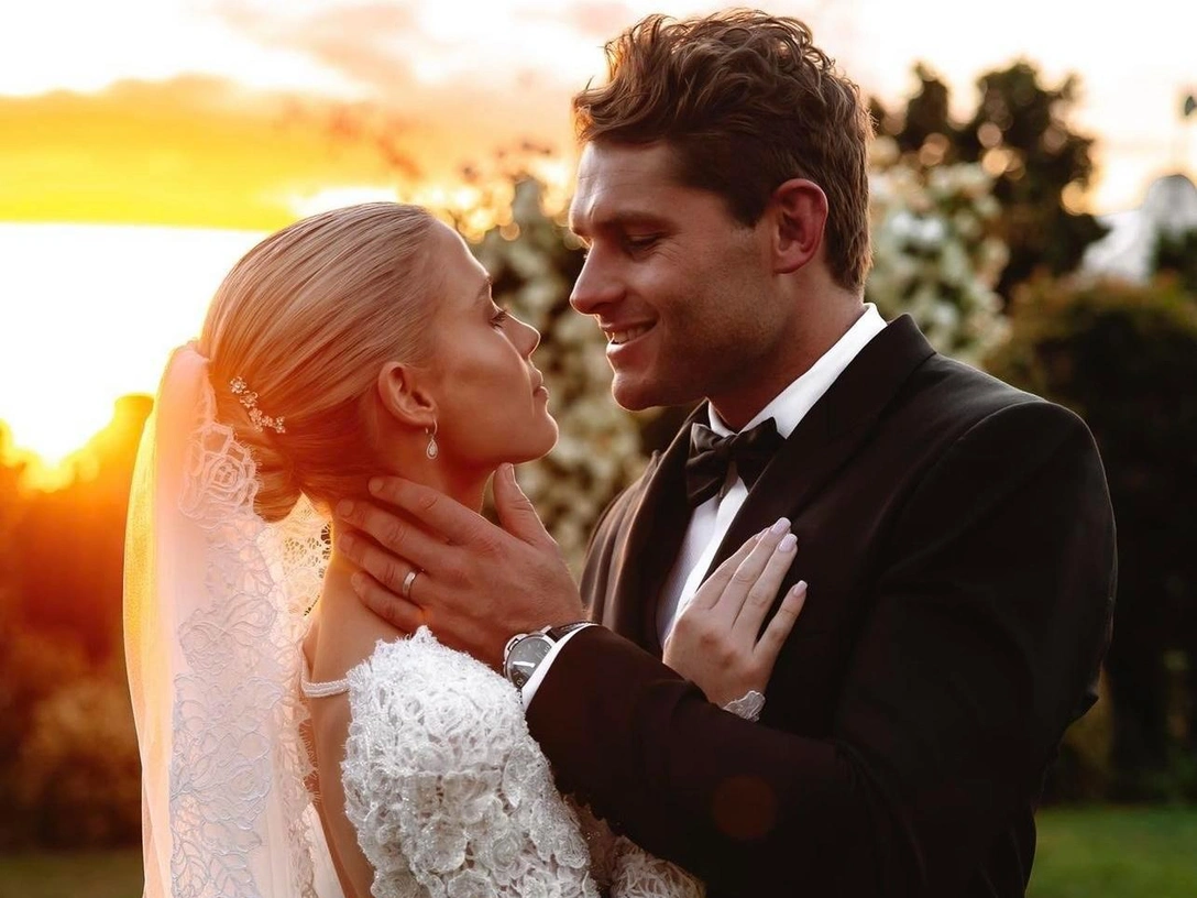 Первоначально в прессе не было фотографий с самого торжества — в Сети циркулировали только редкие снимки с предсвадебного приема, когда жених в белой рубашке и брюках и невеста в шелковом платье цвета слоновой кости позировали на фоне бассейна у океана. Однако теперь журнал Hello! Magazine опубликовал эксклюзивные фото с одного из главных аристократических торжеств 2023 года (читайте также: Сказка наяву: 10 самых долгожданных свадеб аристократов в 2023 году).