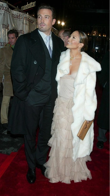 Тогда же, в 2002-м, случился первый и один из самых красивых совместных выходов пары на нью-йоркской фильма «Госпожа горничная», где Лопес сыграла главную роль. Дженнифер блистала в бежевом платье на тонких лямках с пышным, украшенным воланами подолом. Декабрьская погода подразумевала верхнюю одежду, потому Джен накинула сверху роскошную белоснежную шубу, которая удачно вписалась в образ. Бен же прибыл на премьеру в классическом черном костюме с лавандовым галстуком. Пара выглядела чудесно, однако стоит отметить, что Аффлек редко улыбался и куда чаще смотрел на фотографов, чем на свою возлюбленную.