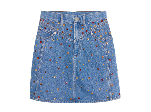 Юбки из денима – отличная альтернатива джинсам для лета. Если хотите приобрести универсальную модель, присмотритесь к вещам без активного декора. А для поднятия настроения советуем обратить внимание на мини-юбку, щедро декорированную цветными камнями.