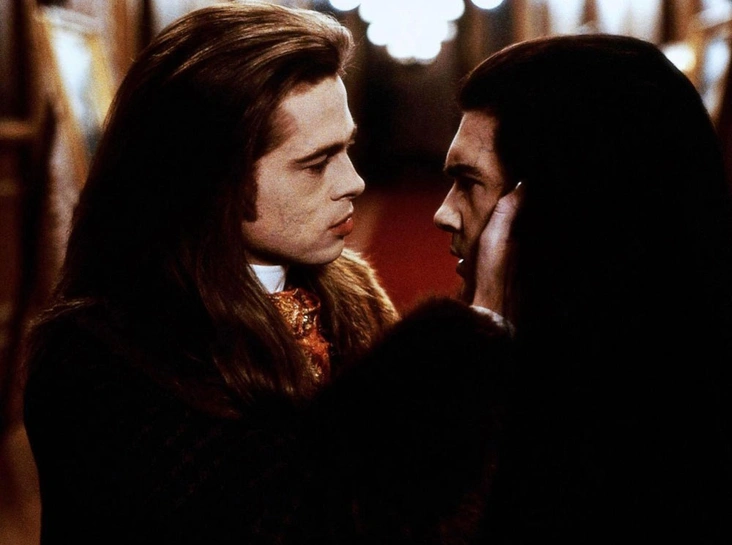 По-настоящему звездная роль актера, которая принесла ему мировую славу. Брэд Питт играет главную роль – вампира, который пришел к падкому на сенсации журналисту, чтобы рассказать свою историю. Вместе с ним в этой ленте снялось множество звезд: Том Круз, Антонио Бандерас, Кристиан Слейтер и Кирстен Данст. Сам Питт был недоволен своей работой и позже рассказывал: «Однажды днем, когда мы еще были в процессе съемок, я позвонил Дэвиду Гиффену, который был продюсером и сказал: "Дэвид, я больше не могу тут сниматься. Я не хочу этого делать. Сколько мне будут стоить отступные, если я сейчас выйду из проекта? И он ответил, очень спокойно: "Сорок миллионов долларов"».