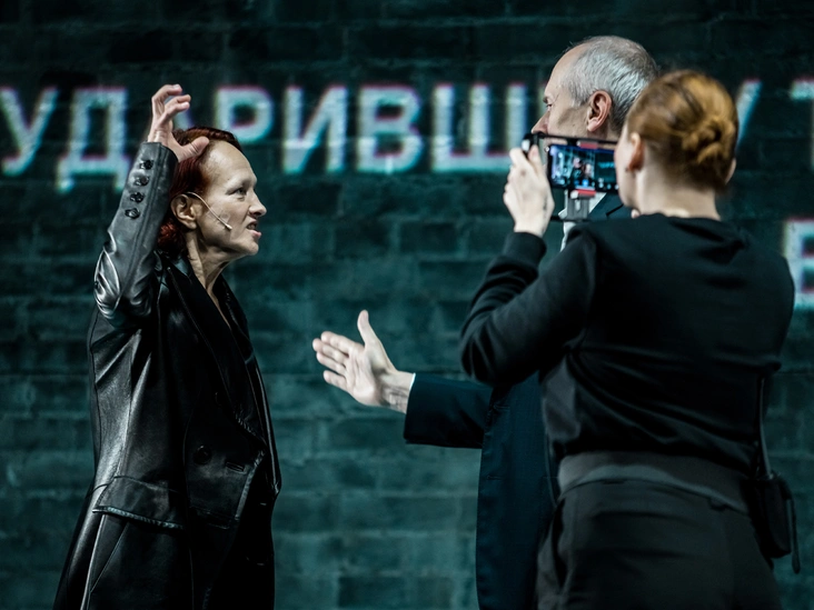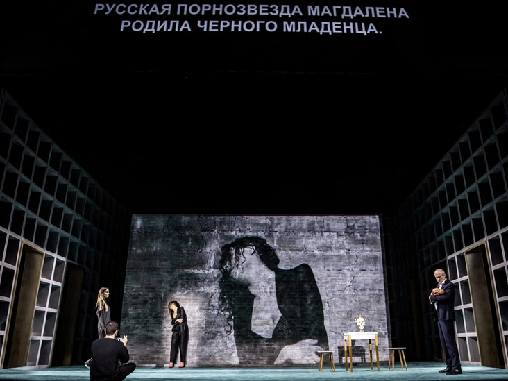 Уже не в первый раз Богомолов использует прием соединения кино и театра. На мой взгляд, это очень классная и интересная техника. Помимо того, что ты находишься в театре, ощущаешь энергию артиста и постановки, а также энергию, которая заложена режиссером в спектакль, у тебя есть возможность увидеть и крупные планы, ведь практически все сцены дополняются видео в режиме онлайн. И этот симбиоз дарит дополнительные эффекты, еще глубже погружает в спектакль.