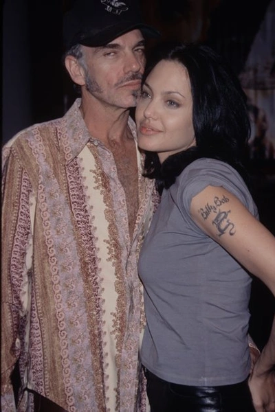 Брак с Билли Бобом Торнтоном она считала одним из самых счастливых времен своей жизни: пара обвенчалась в маленькой церквушке, надев на шею флакончики с кровью друг друга. Также они сделали себе татуировки с именами партнера.