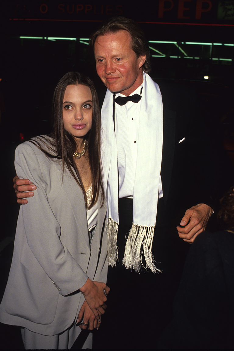 В 1982 году Анджелина вместе с отцом снялась в картине «В поисках выхода», но дебют вышел не очень удачным, и часть ленты пришлось урезать, выпустив ограниченным тиражом. В 11 лет будущая звезда начала посещать актерскую школу Ли Страсберга, где чувствовала себя аутсайдером. Она считала себя некрасивой и бесполезной и начала уродовать свое тело, нанося на него порезы и ссадины – так девушка начинала ощущать себя живой. Она одевалась в вещи из секонд-хэндов, преимущественно черных цветов, и почти ни с кем не общалась.