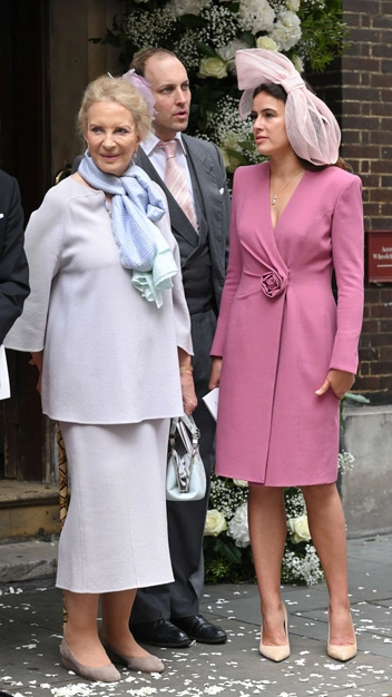 Также на свадьбу были приглашены принцесса Майкл Кентская, леди Габриэлла Виндзор, лорд Фредерик Виндзор и его жена, актриса Софи Уинклман. Последняя тоже пришла в розовом: ее платье-пиджак с замысловатой застежкой-цветком дополнял массивный тюлевый бант на голове. Леди Габриэлла Виндзор появилась в удлиненном темно-синем платье с растительным принтом и широкополой красной шляпе, принцесса Майкл Кентская — в элегантном лавандовом костюме.