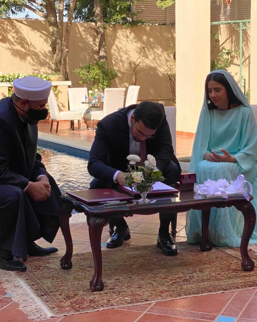 На церемонии присутствовали только близкие родственники пары. Также были соблюдены меры безопасности, связанные с угрозой распространения коронавируса. Помолвка влюбленных состоялась 5 июля 2020 года, и с тех пор принц и «арабская золушка», как прозвали в сети его избранницу, ждали подходящего случая, чтобы узаконить свои отношения в присутствии родных.
