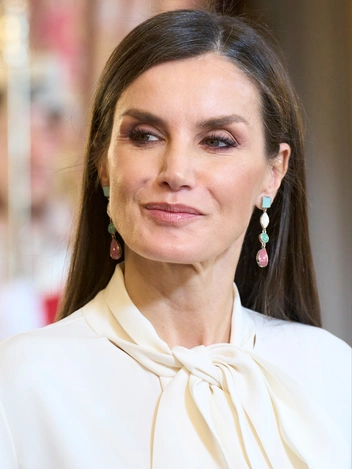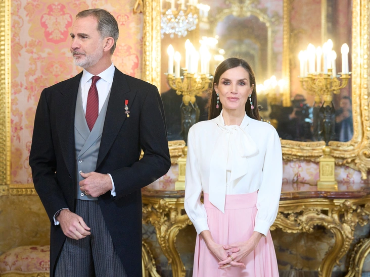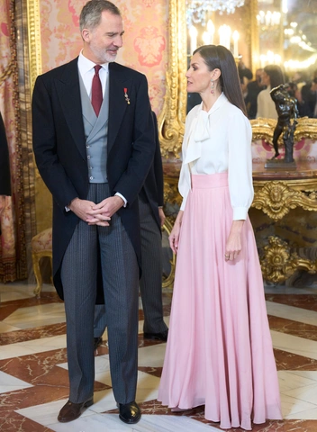 Летиция считается признанной иконой стиля и одной из самых неотразимых королевских особ мира. Однако на этот раз ее выбор разочаровал модных обозревателей. Для приема дипломатического корпуса королева выбрала немного странный комплект — белую шелковую блузу Carolina Herrera с «кошачьим» бантом со струящейся бледно-розовой юбкой и туфлями испанского бренда LODI в тон.