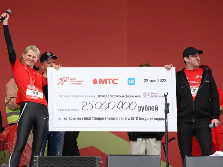 28 мая на Васильевском спуске в Москве стартовал забег МТС Бегущие сердца, который прошел под девизом #БежимСоСмыслом. Его титульным и генеральным спонсором, а также главным партнером, стала компания МТС, генеральным спонсором — компания VK. Также проект в этом году поддержали Архыз Vita, Natura Siberica и #SlimFitClub. Целью мероприятия стал сбор пожертвований на развитие проекта по оказанию реабилитационной помощи детям и молодым взрослым с опухолями головного и спинного мозга, который реализует Благотворительный Фонд Константина Хабенского.