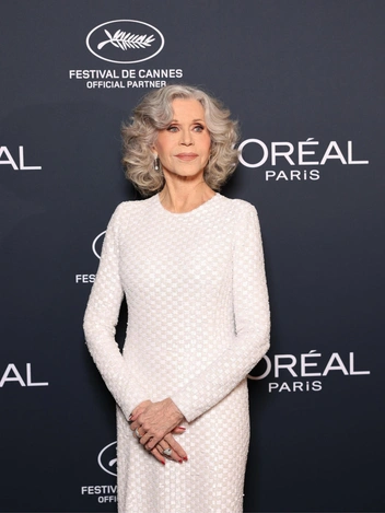 Также присутствовала Джейн Фонда, чья неувядающая красота всегда восхищает. В свои 87 лет она выглядит фантастически. Фонда надела белое платье с выраженными плечами. Яркие серебристые локоны Джейн были уложены пышными волнами. Пара серебристых босоножек на каблуках завершили образ (читайте также: Модная тайна Манхэттена: кем была Энн Лоу, автор свадебного наряда Джеки Кеннеди).