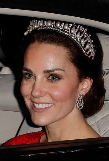 35-летняя Кэтрин выбрала для вечера тиару Lover's Knot, унаследованную от принцессы Дианы. Принцесса Уэльская в свое время очень любила это украшение (читайте также: «Самые красивые королевские тиары современности»). Герцогиня Кембриджская появилась в белом шелковом платье, дополненном элегантным бриллиантовым колье и жемчужными серьгами-каплями. Ее Светлость, сейчас ждет третьего наследника и, судя по фотографиям, на которых она мило улыбалась супругу, чувствует себя прекрасно.