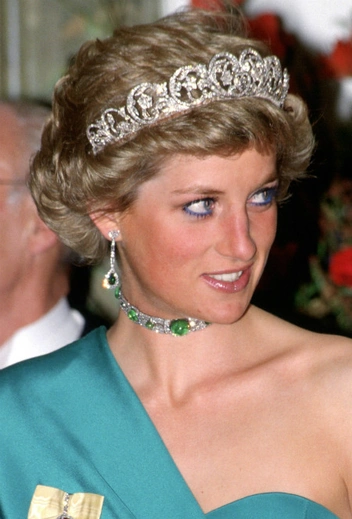 С помпезным подвенечным туалетом, украшенным старинным кружевом, принадлежавшим королеве Марии Текской, а также десятью тысячами жемчужин и другими фантастическими деталями, соседствовала тиара Спенсеров. Диана предпочла идти к алтарю в собственном фамильном украшении, как и предписывалось девушкам из аристократических семей. Самые ранние свидетельства существования тиары из золота и серебра с впечатляющим бриллиантовым цветочным рисунком датируются 1838 годом. Позже она претерпела изменения благодаря компании Goldsmiths and Silversmiths, а 1930-х ювелирный дом Garrad последний раз видоизменил драгоценность (читайте также: Свадебная тиара принцессы Дианы украсила другую невесту).