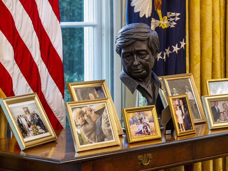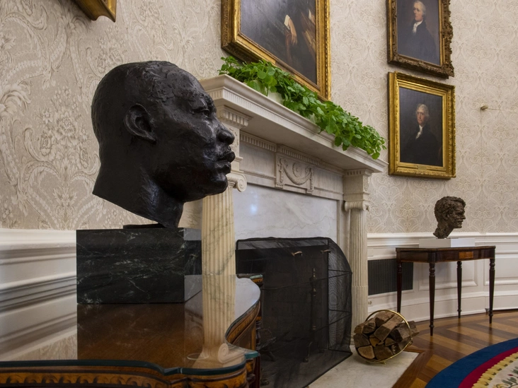 Знаковой, как и всегда, стала смена фотографий и бюстов в Овальном кабинете. Семейные снимки Байденов заняли свое место на специальной консоли, они соседствуют с бронзовым бюстом лидера профсоюзов и движения за гражданские права Сезара Чавеса. Когда-то Трамп вернул в кабинет бюст бывшего премьер-министра Великобритании Уинстона Черчилля, но он исчез. Его место заняли бюсты бывшего президента США Гарри Трумэна, выдающейся бывшей первой леди Элеоноры Рузвельт, бывшего генерального прокурора США Роберта Кеннеди, а также активистов за гражданские права — Мартина Лютера Кинга и Розы Парк.