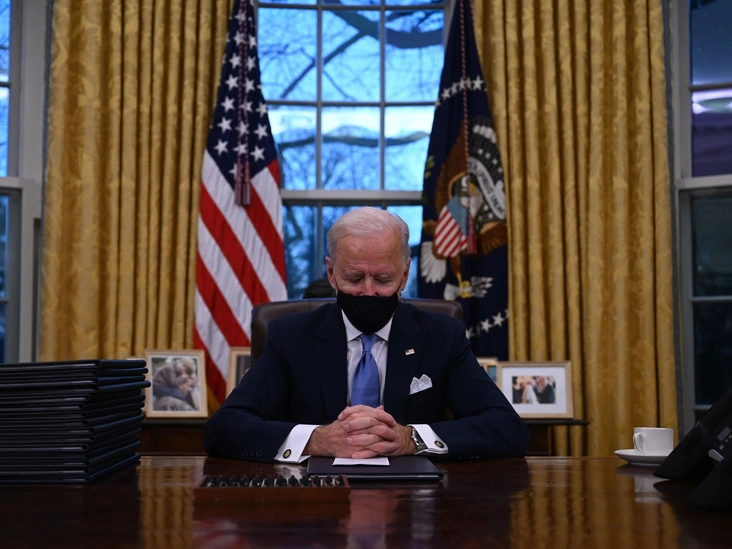 А вот кнопки для подачи диетической колы, похоже, больше нет. Она располагалась на небольшой прямоугольной коробке, напоминавшей многим журналистам маленький детонатор, а теперь пропала с рабочего стола главы Белого дома. По крайней мере, когда в четверг Байден занял свое место, чтобы подписать ряд указов, отменяющих многие решения Трампа, ее не было.