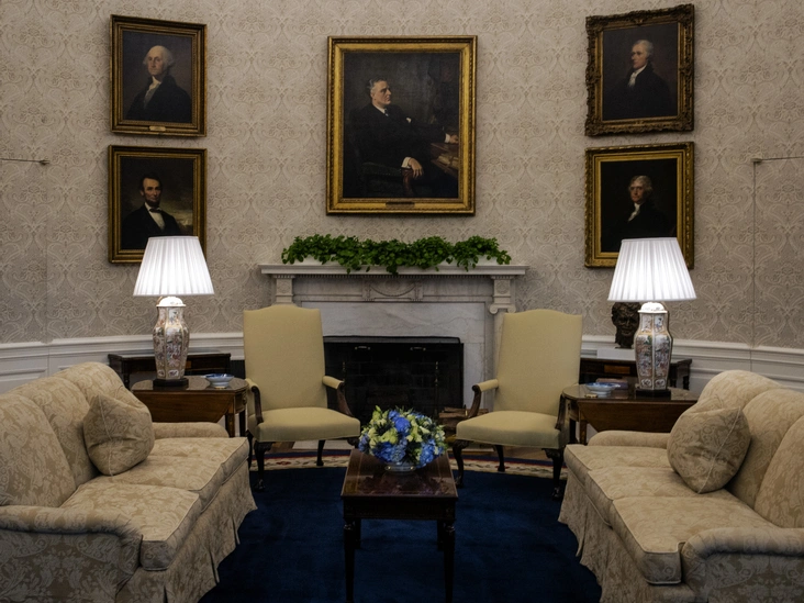 Как правило, все президенты меняют обстановку в Овальном кабинете в самом начале своего срока. Это не только способ выразить свои индивидуальность и вкус, но и шанс адресовать символические послания публике. Когда Дональд Трамп занял президентский офис в 2017 году, его изменения оказались более масштабными, чем у многих его предшественников, — многие вспоминают появление кнопки для практически мгновенного предоставления диетической колы.