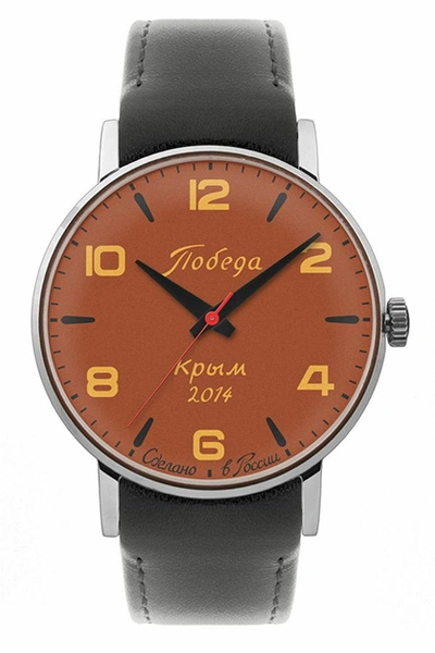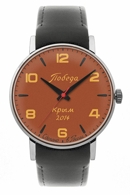 Вторую линию часов создатели выпустили специально к 70-летней годовщине освобождения Крыма от оккупации. На коричневом циферблате с желтыми цифрами написано «Крым 2014».