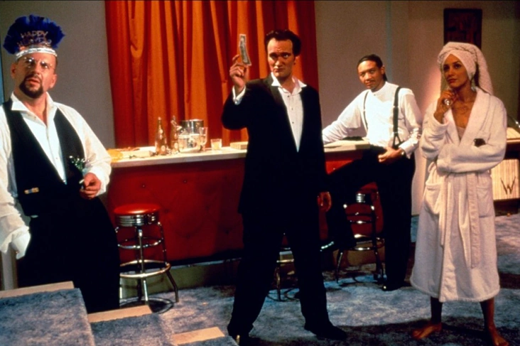 После работы с Квентином Тарантино над фильмом «Криминальное чтиво» Брюс Уиллис захотел сняться в другой его ленте – одной из глав киносборника «Четыре комнаты» под названием «Пентхаус: человек из Голливуда». У фильма был небольшой бюджет, и Тарантино не мог выплатить положенный Уиллису гонорар, поэтому актер снялся в нем безвозмездно. Из-за правила Гильдии киноактеров его имя не указали в титрах, потому что артисты не имеют права сниматься бесплатно.