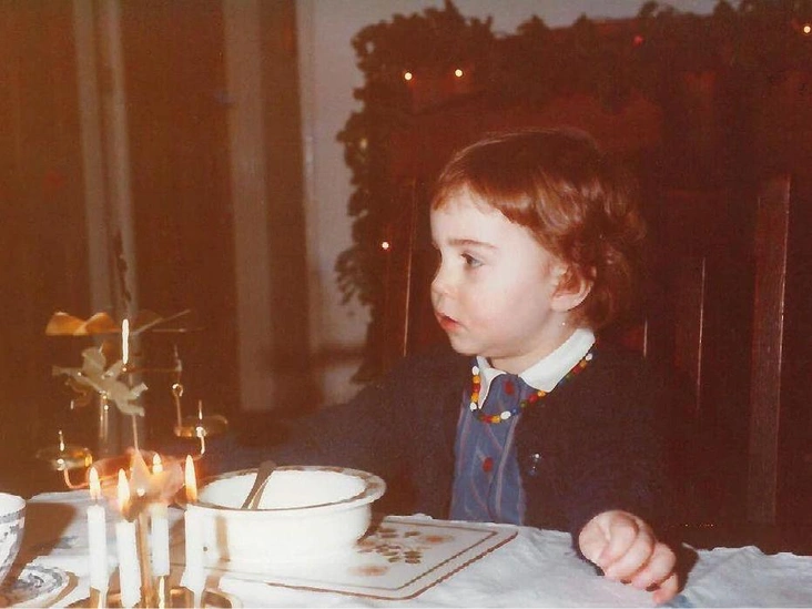 На нем годовалая Кэтрин сидит за праздничным столом — фото сделано в Рождество 1983 года. Кейт не смотрит в камеру, сзади нее камин украшен веткой ели, а перед ней стоит ее детская тарелочка.
