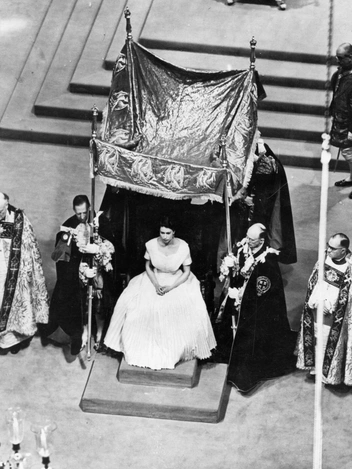 Традиционная коронация британского монарха состоит из шести основных этапов: признание, присяга, помазание и инвеститура, которая включает в себя коронацию, возведение на престол и почтение.