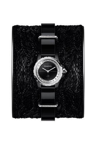 Всем трансформациям, которые можно производить с моделью, мы обязаны ее размерам – всего лишь 19 мм. Это миниатюрный вариант легендарных J12. Часы снабжены кварцевым механизмом, корпус выполнен из черной high-tech механики и стали, а безель усыпан 32 бриллиантами. Лаконичная сдержанная роскошь – все по вневременным канонам Chanel.