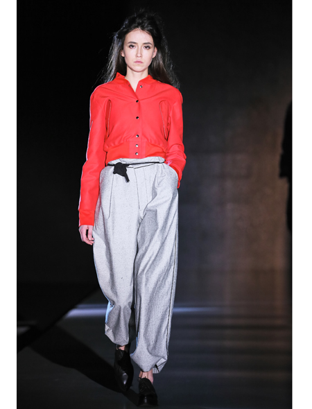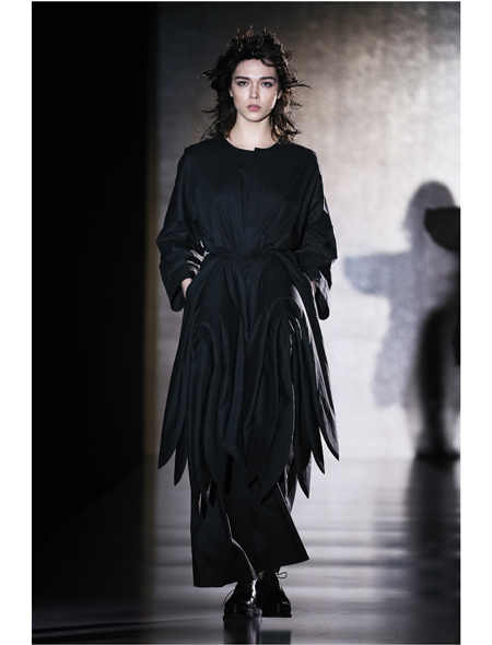 Петербургский дизайнер Евгения Малыгина, создающая одежду под брендом PIROSMANI BY JENYA MALYGINA для сложных творческих личностей, славится неповторимым авторским почерком, умением виртуозно работать с драпировками и создавать новые миры, используя минимум красок. В представленной коллекции над слоистыми складками и угловатыми конструкциями доминируют минималистичные и, в то же время, монументальные вещи-оверсайз.