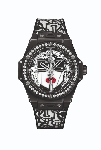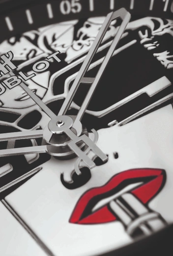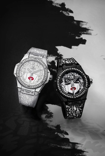 На этот раз художник, известный своими красочными работами, представил черно-белую историю в виде двух моделей, выпущенных лимитированным тиражом в количестве 100 штук. Одна модель выполнена из полированной стали с матовой отделкой, лакированным циферблатом, ремешком из кожи с каучуковой подкладкой в белом цвете. Другая – из черной керамики с лакированным циферблатом и ремешком из кожи. Две противоположности привлекают и дополняют друг друга. А отсылка к известной работе Марка Ферреро «Помада» становится манифестом современной женщины XXI века – многогранной, загадочной и уверенной в себе.