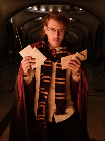 Роль Гарри Поттера досталась известному дизайнеру Роману Уварову, он же выступил в качестве креативного продюсера съемки. Наряду со звездами героями фотоистории стали машинисты метро: Яна Шарова предстала в образе забавной Полумны Лавгуд, а Ольга Бурылева и Игорь Андреев стали учениками школы чародейства и волшебства. Картины можно «оживить»: достаточно навести камеру телефона на QR-код рядом, и на экране откроется атмосферный видеоролик с героями. Это позволяет по-настоящему прочувствовать магию выставки.