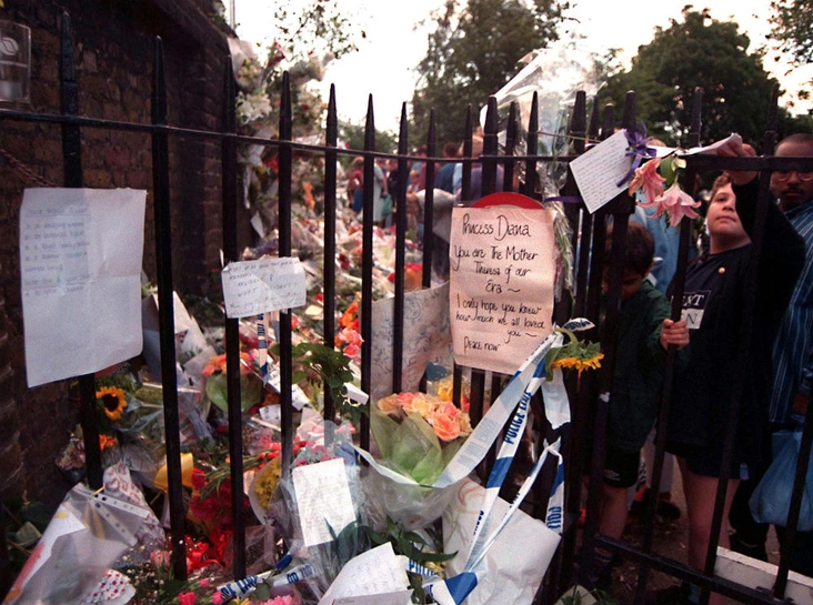 Реакция общественности на ее смерть не была похожа на то, с чем когда-либо сталкивалась британская королевская семья. Скорбящие оставляли тысячи букетов и памятных записок перед Букингемским дворцом. Ее поклонники требовали приспустить на нем флаг в память о принцессе. Несмотря на то, что это противоречило официальному протоколу, Виндзоры уступили нарастающему общественному давлению и подчинились воле масс. Также для Дианы были огранизованы государственные похороны, которые посетили тысячи людей, желающих проститься с «королевой сердец».