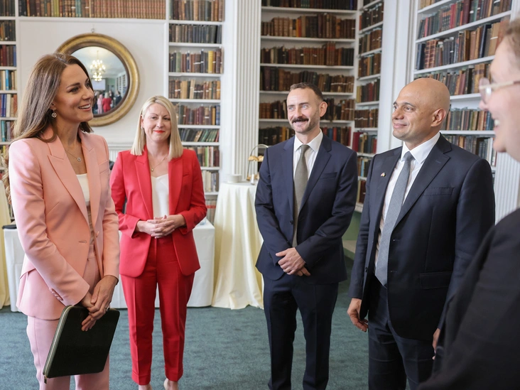 Перед началом встречи герцогиня пожимала руки высокопоставленным гостям, в том числе министру здравоохранения Саджиду Джавиду. Среди других присутствовавших членов правительства были министр по делам семьи Уилл Айвинс и должностные лица из министерств здравоохранения, социального обеспечения и образования.
