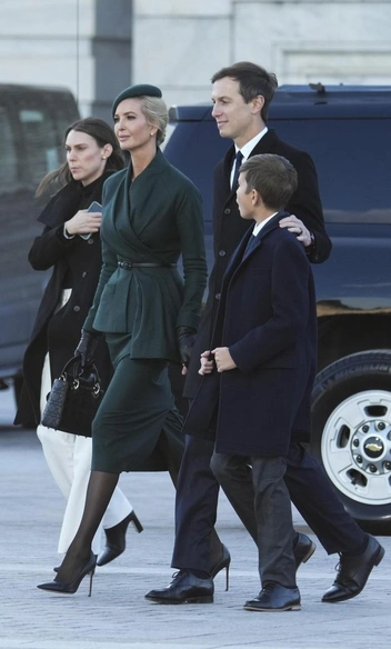 Досталось также и дочери президента Иванке, которая выбрала для торжественной церемонии изумрудный костюм с жакетом и юбкой. Ее сравнивают с главной героиней сериала «Рассказ служанки», Сереной Джой Уотерфорд.