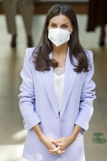 Несложно заметить, что Летиции действительно как никому другому подходит пастельный сиреневый оттенок, который делает черты ее лица более мягкими и плавными, а саму фигуру — подтянутой и утонченной (читайте также: «Битва двух королев: 4 модных образа, которые Летиция подсмотрела у принцессы Дианы (и сделала лучше)»). И этот потрясающий костюм — не исключение. Например, на встречу в AECC (Испанская ассоциация по борьбе с раком) в сентябре 2021 года Летиция надела сиреневый костюм с голубоватым отливом, дополненный кружевным белым топиком, и не прогадала.