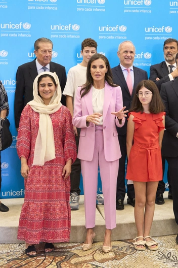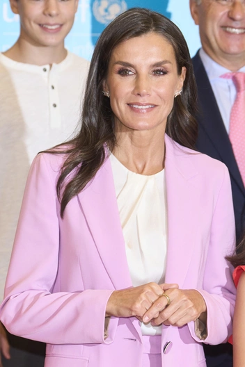 Эта церемония — далеко не первая локация, куда Летиция примеряет сиреневый костюм. В сентябре прошлого года королевская особа демонстрировала тот же комплект из двух предметов гардероба на церемонии вручения наград Высшего совета по научным исследованиям в Мадриде. Правда, под блейзером тогда была белая блузка, а вместо босоножек в тон — туфли на каблуках телесного цвета.