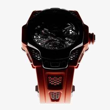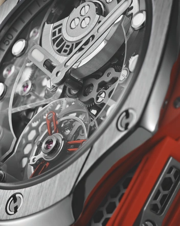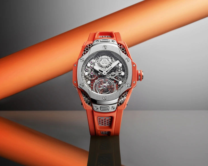 Будучи сторонником теории цвета, Росс предпочел оранжевый цвет, символизирующий энергию и оптимизм, в качестве главного акцента в этой модели. Внутри часов — мануфактурный калибр HUB6035, состоящий из 282 компонентов, который работает с частотой 3 Гц и обеспечивает запас хода 72 часа.