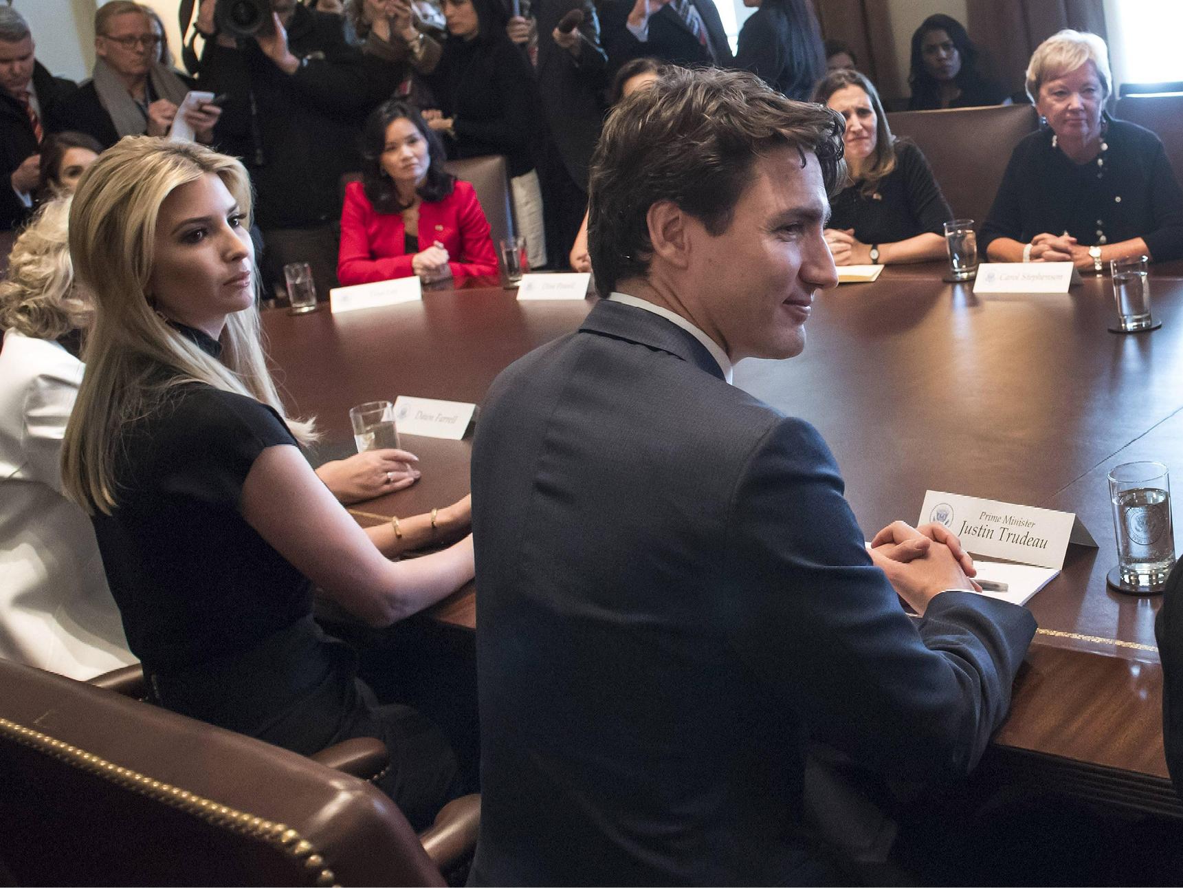 Иванка Трамп, как известно, шутила о том, что влюбилась в обаяние Джастина Трюдо во время круглого стола о женщинах в рабочей силе, и многие пользователи шутили о том, что дочь американского президента, похоже, влюблена в премьера Канады. Джуди сказала: «Иванка Трамп, похоже, тоже попала под чары Трюдо, явно глядя на него с благоговением, когда он болтал с остальными на встрече».