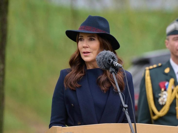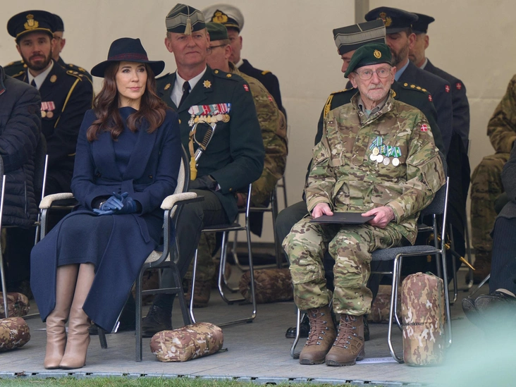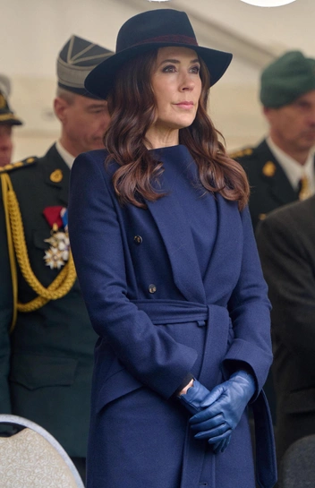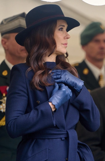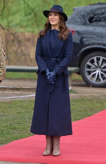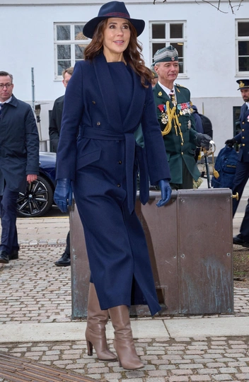 Так, королева прибыла в Музей свободы в Копенгагене, чтобы поздравить офицеров с 75-й годовщиной создания Национальной гвардии. Мэри выбрала темно-синее пальто из кашемира с поясом на талии, шляпу из кашемира в цвет с бордовой лентой, а также изящные кобальтовые перчатки из кожи. Образ завершил необычный акцент — светло-коричневые сапоги-трубы на высоком каблуке, которые удачно гармонировали с синими оттенками наряда. В вопросе прически вкус Мэри неизменен — королева предпочла завить волосы в крупные локоны средней длины. В макияже королева сделала акцент на глаза, подчеркнув цвет темно-коричневыми тенями, и подвела губы пыльно-розовым блеском (читайте также: Какой оттенок помады подчеркнет вашу естественную красоту — этот секрет знают все визажисты).