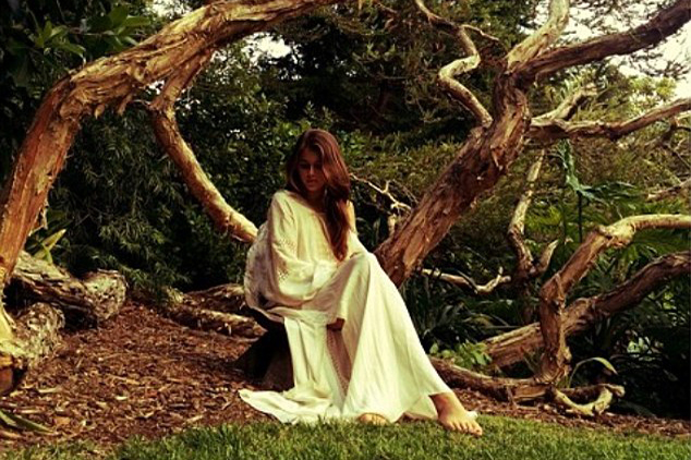 На снимках Кайа, одетая в воздушное белое платье, сидит на корнях деревьев, позирует возле океана и лежит на траве.