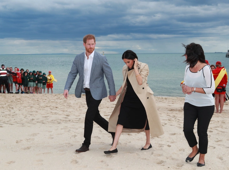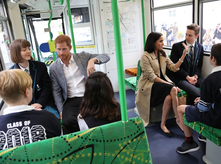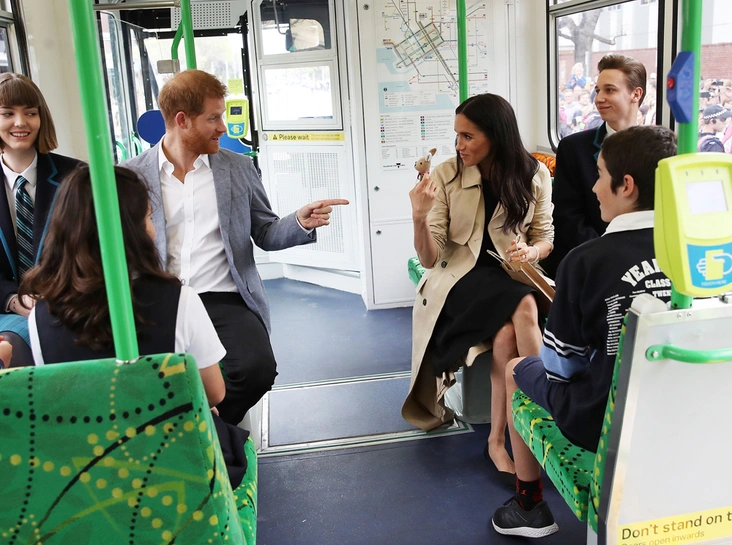 Не обошлось и без знакомства с местной достопримечательностью – знаменитым Мельбурнским трамваем (напомним, что трамвайная сеть здесь считается крупнейшей в мире, а сам трамвай – символом города), на котором Гарри и Меган отправились на пляж. Увы, снова по работе: здесь Их Высочества познакомились с волонтерами специального пляжного патруля, который следит за чистотой береговой линии залива Порт-Филипп.