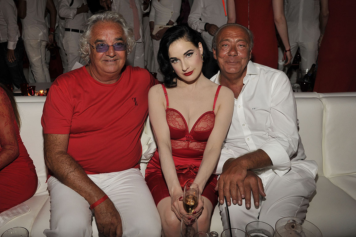 Дамы на день рождения Фаваза Груози предсказуемо пришли в украшениях de Grisogono. Виновник торжества объявил красно-белый дресс-код и назвал свою вечеринку «Irresistible Troublemaker».