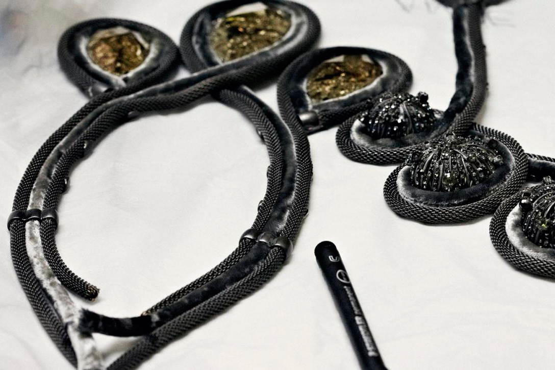Камилла Мичели работает с такими материалами, как плексиглас, или органическое стекло, керамика, искусственный жемчуг, тесьма грогрен (grosgrain), перья, дерево и сталь. Дизайнер говорит, что всегда находится в творческом поиске и готова рисковать. Вдохновением для нее служит влияние собственных друзей и знакомых из мира моды. Камилла Мичели любит ходить по барахолкам и антикварным магазинам, а также покупает вещи на аукционах.