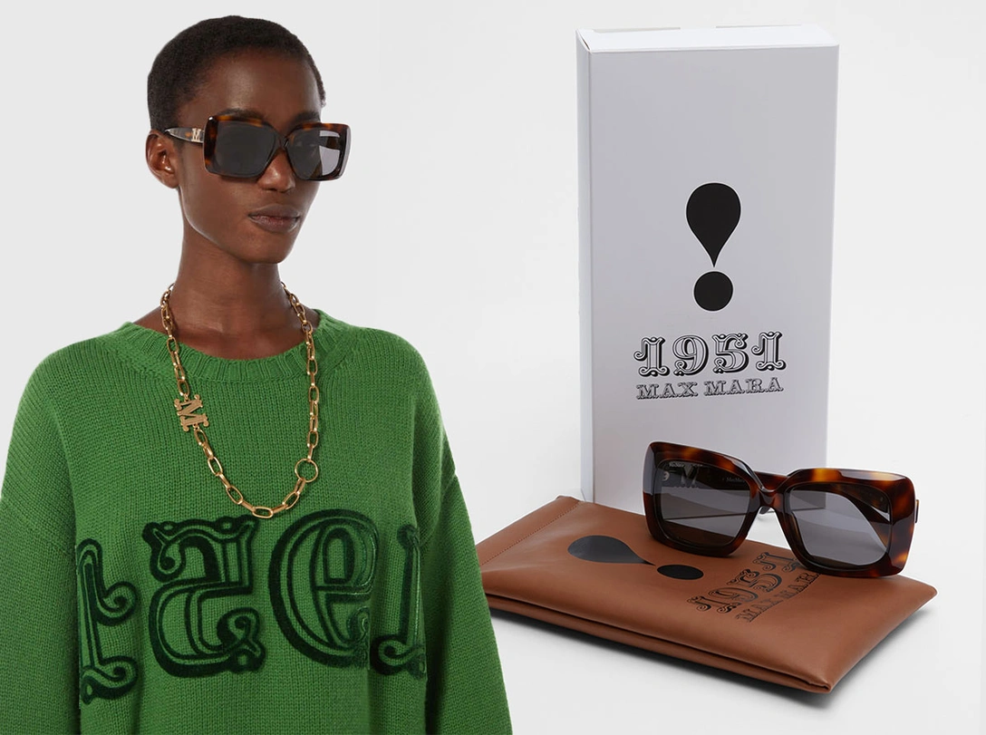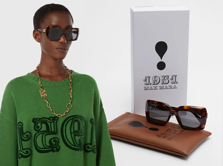 Новый аксессуар представляет из себя легендарную прямоугольную форму из ацетата в новой интерпретации, в новом элегантном видении и с современным дизайном. Фронтальная рамка многогранна, а заушники оснащены металлическим логотипом 3D MaxMaragram в стиле барокко. Оправа выполнена в гаванских оттенках. Новые солнцезащитные очки ограниченного выпуска к 70-летию Max Mara идут в комплекте с футляром верблюжьего цвета с логотипом 1951.