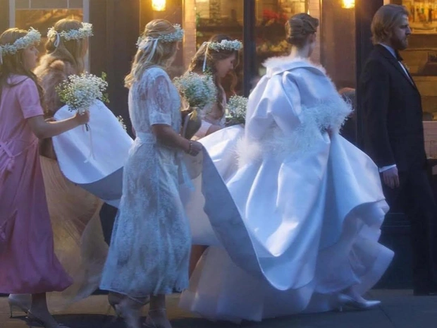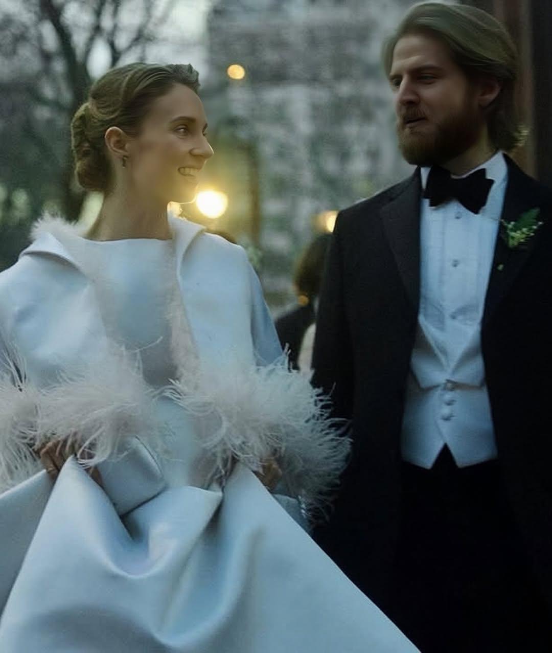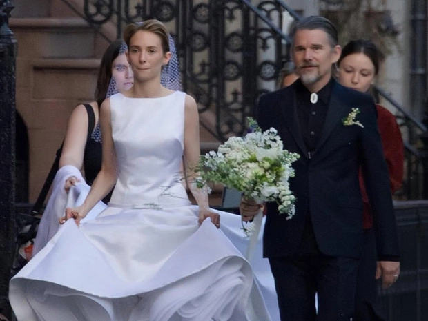 Торжество прошло в нью-йоркской церкви Святого Георгия. Именно по прибытию в нее папарацци удалось застать невесту, ее возлюбленного и гостей. Судя по фотографиям, Майя выбрала эффектное платье с длинным шлейфом и архитектурным кроем. Ее наряд оказался довольно минималистичным — актриса сделала ставку лишь на складки из белоснежного шелка и фатина, но решила обойтись без традиционного декора вроде вышивки или кружева.