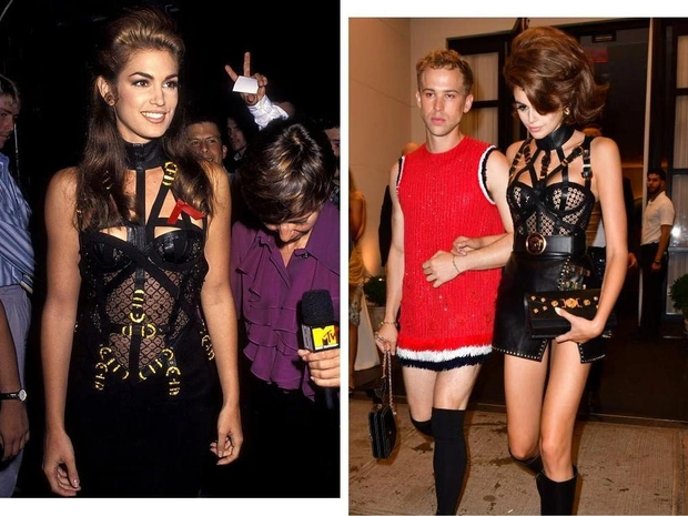 В наряде, точно повторяющем один из выходов Синди Кроуфорд, свое восемнадцатилетие отметила Кайя Гербер. На вечеринку она пришла в черном топе, сильно похожем на культовое платье с портупеей Versace, в котором модель отметилась на премии MTV Video Music Awards в 1992 году.