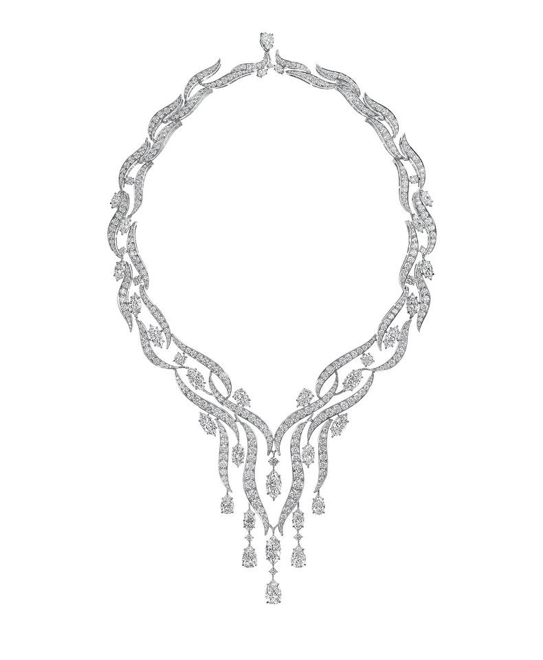 Собрание Water Collection – это 19 драгоценных изделий, среди которых колье, кольца, браслет и серьги, сделанные из платины. Красоту и изменчивость воды передают бриллианты разной огранки в сочетании с изумрудами, синими сапфирами, аквамаринами, бирюзой, турмалинами параиба и зелеными турмалинами. Дом Harry Winston известен особым методом работы с драгоценными камнями. Ювелир Гарри Уинстон часто использовал невидимую оправу из тонкой платиновой проволоки, стремясь передать первозданную красоту камня.