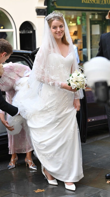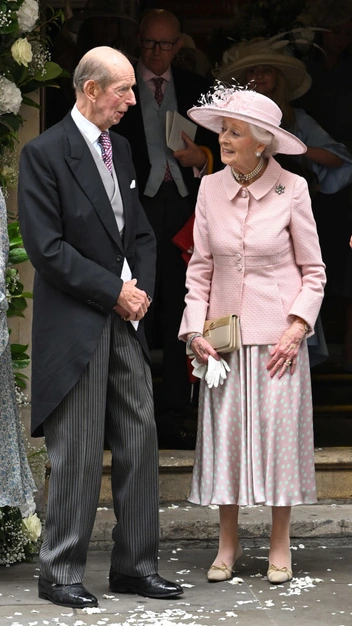 Что касается королевских гостей, то Софи Уэссекская выбрала для торжества розовое платье-миди, которое она дополнила телесными туфлями и элегантной шляпкой с цветком. Софи Уинклман также пришла в розовом: ее платье-пиджак с замысловатой застежкой-цветком дополнял массивный тюлевый бант на голове. Леди Габриэлла Виндзор появилась в удлиненном темно-синем платье с цветочным принтом и акцентной красной шляпке, принцесса Майкл Кентская — в элегантном лавандовом костюме.