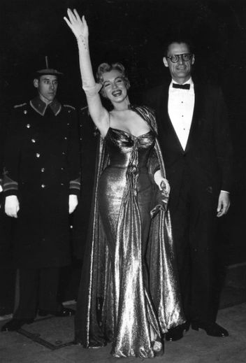 На молодой Елизавете было темное платье со слегка спущенными плечами, высокие белые перчатки, тиара и другие королевские украшения. Актриса же появилась в облегающем парчовом платье на тоненьких лямках в голливудском стиле, впрочем, также дополненном перчатками. В следующий раз, когда актриса снова поехала в Великобританию в компании мужа годом позже, она превысила норматив провозимого самолетом багажа, взяв с собой целых 27 чемоданов и вынудив Миллера заплатить за это полторы тысячи долларов штрафа (примерно 17 тысяч долларов по современному курсу), о чем с упоением писали в The Daily Mail.