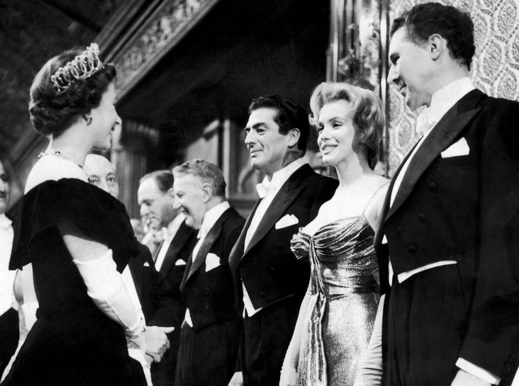 За долгие годы правления Елизавете II посчастливилось познакомиться с огромным количеством разнообразных деятелей, включая политиков, ученых, религиозных деятелей и людей искусства. Члены британской королевской фамилии нередко знакомились со звездами, так как те охотно приезжали в Лондон на премьеры своих фильмов. Так и состоялась встреча Мэрилин Монро с Ее Величеством.